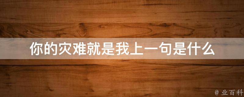 你的灾难就是我上一句是百因必有果,这是一个网络梗。从百因必有果,你的报应就是我演变而来。这句话的意思是事情的结果是由不同的原因导致的,人如果做了不好的事肯定会有报应的。