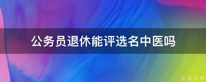 公务员退休不能评选名中医,公务员和退休人员不得参加职称评审。包括参照公务员法管理的人员、离退休人员和达到法定退休年龄的人员。考核认定要符合4个前提条件:一是全日制院校毕业生;二是从事本专业或相近专业技术工作;三是国家已实行以考代评的专业除外;四是考核合格、工作称职,工作期间完成继续教育学时。