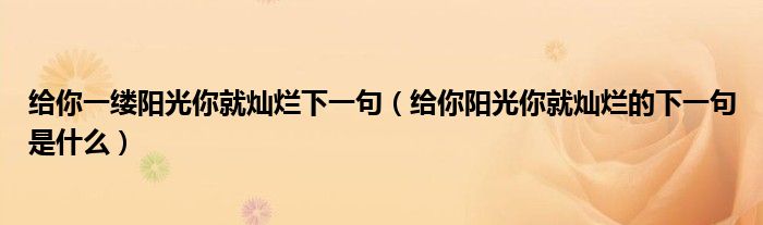 大家好,小夏来为大家讲解下。给你一缕阳光你就灿烂下一句,给你阳光你就灿烂的下一句是什么很多人还不知道,现在让我们一起来看看吧!