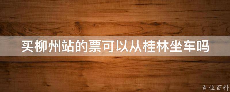 买柳州站的票可以从桂林坐车。如果在网上购买车票,需要先到途径的售票窗凭身份证换好票,即可在桂林火车站上车。不过具体的规定可能会因不同地区、不同时间以及不同的运输工具而有所不同,建议在购买车票前仔细阅读购票须知,或者直接向售票窗口咨询相关规定。