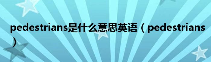 大家好,小联来为大家解答以上的问题。pedestrians是什么意思英语,pedestrians这个很多人还不知道,现在让我们一起来看看吧!