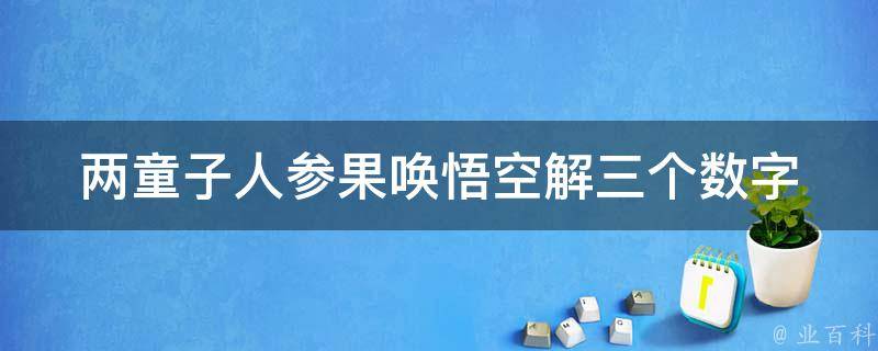 两童子人参果唤悟空解三个数字是230。因为两是指数字2,参与数字3拼音相似,空说明是0,所以,两童子人参果唤悟空解三个数字是230。在数字谐音中,2代表爱、两人世界;3代表想念、生命、生活;0代表圆满、完美、无尽。
