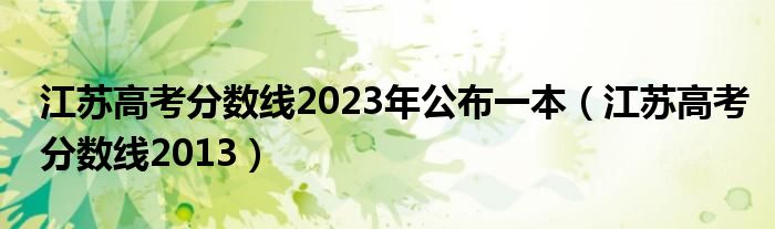 大家好,我是小科,我来为大家解答以上问题。江苏高考分数线2023年公布一本,江苏高考分数线2013很多人还不知道,现在让我们一起来看看吧!