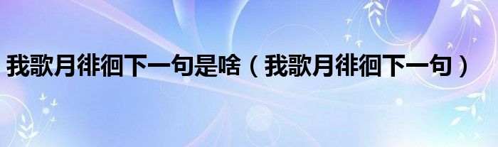 大家好,我是小科,我来为大家解答以上问题。我歌月徘徊下一句是啥,我歌月徘徊下一句很多人还不知道,现在让我们一起来看看吧!
