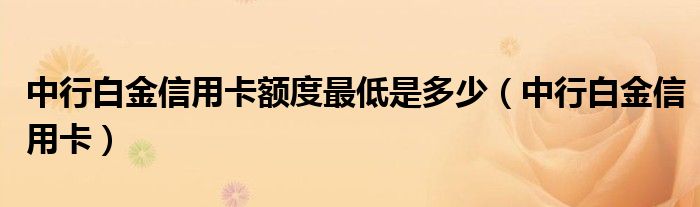 1、中行白金信用卡最低额度是5万,根据在中行的资产情况,银行会评定,最高500万额度。