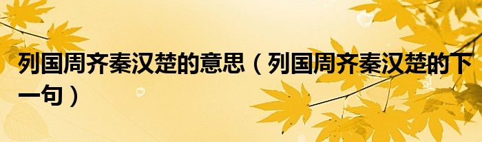 大家好,我是小科,我来为大家解答以上问题。列国周齐秦汉楚的意思,列国周齐秦汉楚的下一句很多人还不知道,现在让我们一起来看看吧!