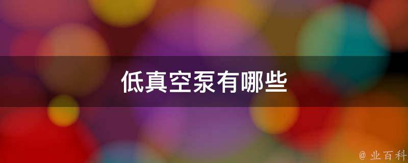 低真空泵有:往复式真空泵、旋转式真空泵、液环式真空泵、喷射式真空泵以及吸附式真空泵等。低真空泵是指工作于1.33乘10^5Pa以下的泵。在实际应用中,低真空泵主要用于排空、抽真空、叶轮压缩机等设备中。