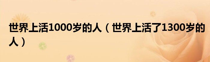 大家好,我是小科,我来为大家解答以上问题。世界上活1000岁的人,世界上活了1300岁的人很多人还不知道,现在让我们一起来看看吧!
