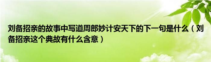 大家好,小夏来为大家讲解下。刘备招亲的故事中写道周郎妙计安天下的下一句是什么,刘备招亲这个典故有什么含意很多人还不知道,现在让我们一起来看看吧!