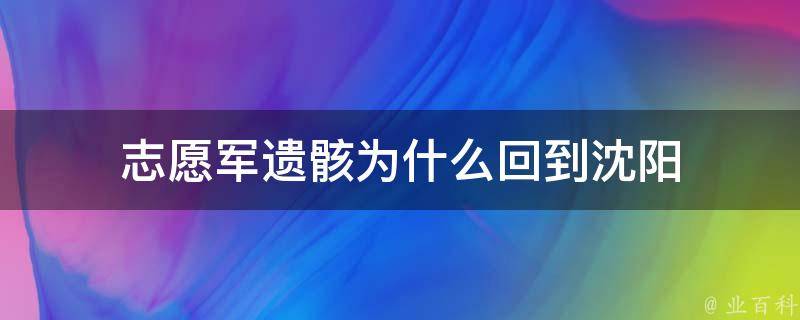 志愿军遗骸回到沈阳是因为接回的大部分志愿军遗骸身份信息很难核实,无法将他们都葬在自己的家乡,而沈阳有中国最大的专门安葬和纪念在抗美援朝战争中牺牲烈士的陵园,和战友们在一起是最好的归宿。