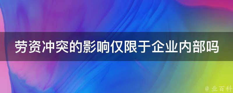 劳资冲突的影响不仅限于企业内部,常常会波及劳动者家属、顾客、社会大众权益,加之劳动者占有较高的人口比例,劳资冲突的议题常衍生为社会问题,全球化的趋势也有可能扩大劳资冲突的影响,如海运公司、航空企业的劳资冲突波及范围较为广泛。