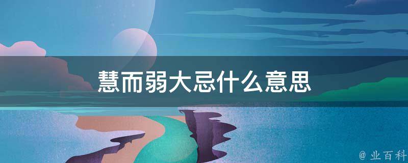 慧而弱大忌的意思是过于犹豫不决、缺乏果断的性格可能会对一个人的生活和事业产生不良影响,需要加以警惕和改变。慧而弱是指一个人聪明但是缺乏果断和决断力,过于犹豫不决,容易受到他人的影响,缺乏自己的主张和立场。