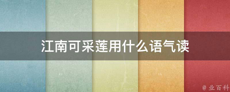 江南可采莲可以用轻快、活泼的语气来读。这句话的意思是江南地区可以采莲蓬,因此语气应该是轻快、愉悦的,表现出采莲的快乐和江南的美丽。江南可采莲是一句出自古诗《江南》的句子。这首诗描述了江南地区的美景和人们的生活。