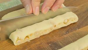 7、用擀面杖将表面擀平整,再用刀分成小块即可。