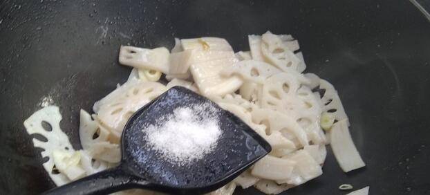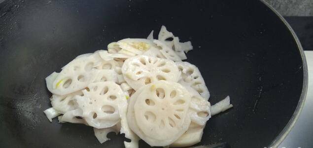 4、放入莲菜大火翻炒均匀。