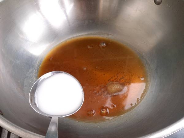 7、淋入水淀粉烧开。