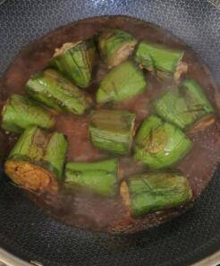 6、之后转中火一直到把茄子煮熟,出锅前放入少许的盐,焖一会出锅即可。