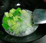 然后青椒切片或者切丝,随个人喜欢,也可以根据个人吃辣的程度换或者添加红辣椒,让成品更美观。