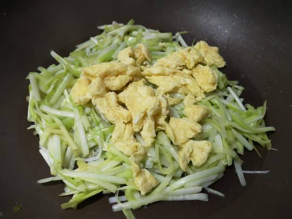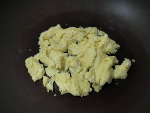 4、锅内热油,倒入鸡蛋炒熟盛出。