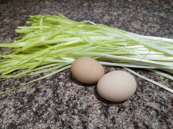 1、准备材料:韭黄300克、鸡蛋2个、盐2克、油3克。
