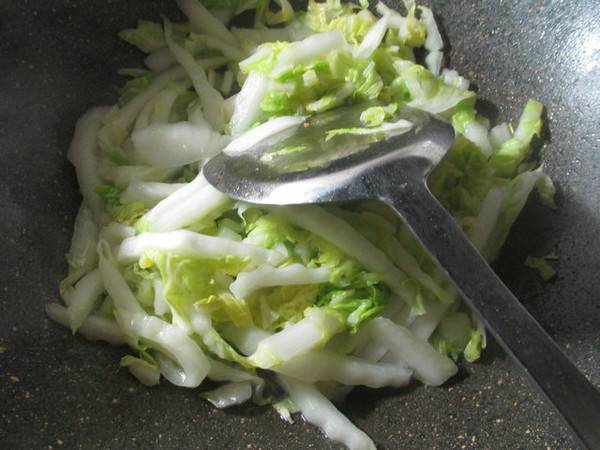 4、烧锅倒油烧热,下入切好的大白菜翻炒翻炒至断生。