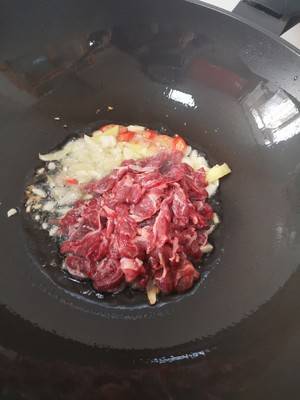 5、加热腌制好的牛腱肉,大火快速爆炒。