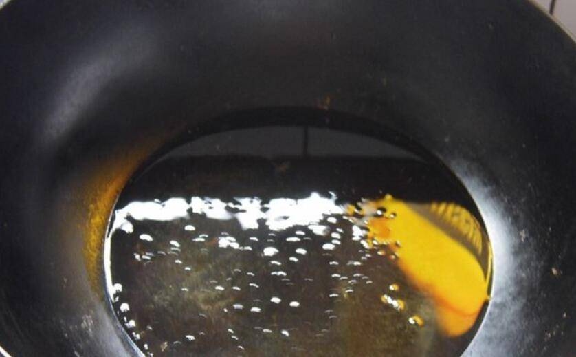 4、锅里倒油烧热。