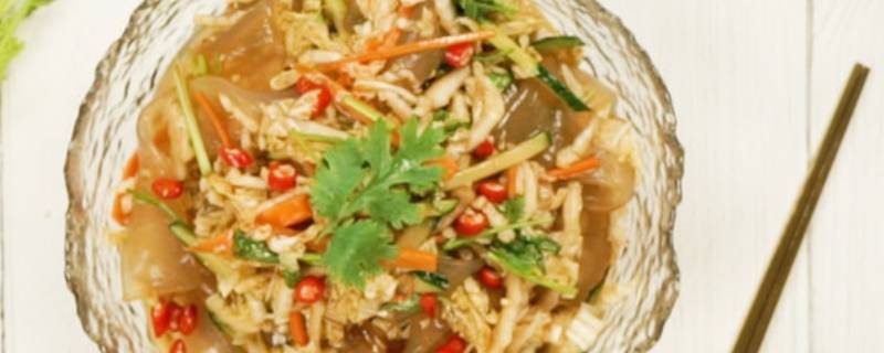1、准备材料:香菜20克、大蒜5克、白菜1颗、胡萝卜50克、拉皮30克、黄瓜1根、醋5克、生抽3克、白砂糖8克、盐2克、香油2克、蒜末5克。