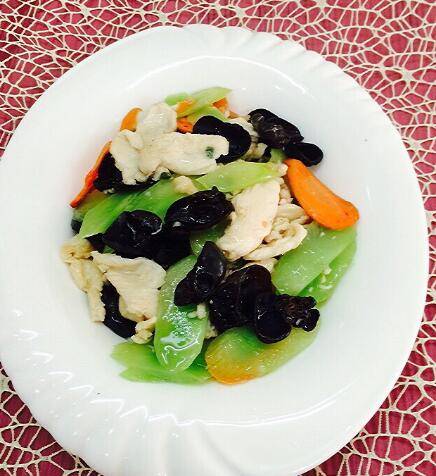 二、木耳炒鸡肉。