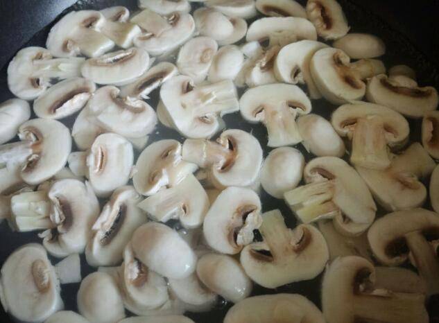 5、放入口蘑和盐,翻炒约2分钟。