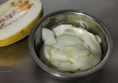 1.金瓜去皮去瓤切片,加盐抓匀腌制15分钟。