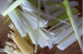 葱姜切丝。