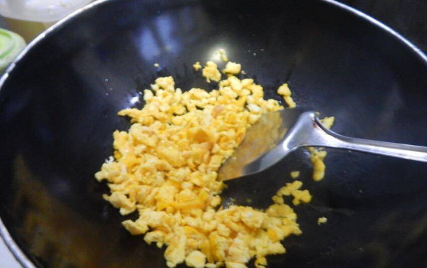 4、鸡蛋快速炒散。