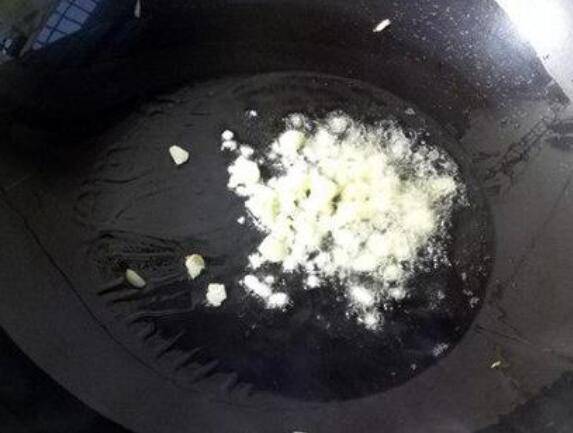 4、所有食村准备好后,开始热锅放入大蒜爆香,(记得注意火候,不要爆黑了)。