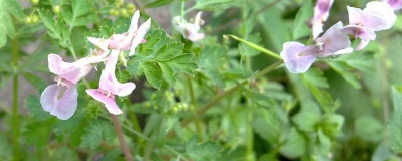 元胡别名延胡索、玄胡。元胡茎高10~20厘米。块茎球形,内部黄色。地上茎纤细稍肉质,每叶柄生叶3~4片,叶二回三出全裂,末回裂片披针形或狭卵形。总状花序,苞片卵形,萼片极小,早期脱落;花瓣紫红色,4片,排为二轮,外轮二片稍大。