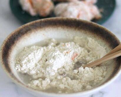 4、100克炸鸡裹粉和100克水调成糊。