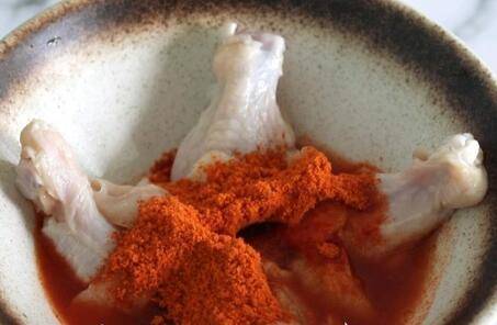 2、将琵琶腿用奥尔良腌,加入适量的水,拌匀,腌制24小时。