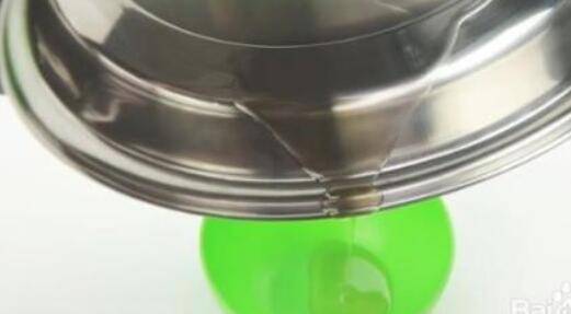 6、完成后,将由倒出,您仍然可以在锅中看到一些油,这时正常的。
