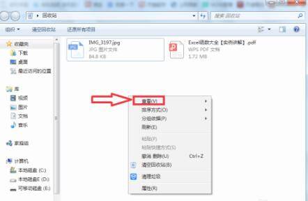 以win7为例:在文件未还原前,打开回收站,右击空白处,弹出右击的下拉子菜单。