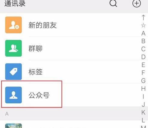 打开微信,点击下方的通讯录,接着点击上部的公众号。