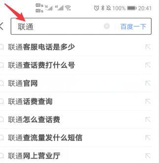 1、以联通为例,打开百度APP,点击百度APP应用搜索栏。