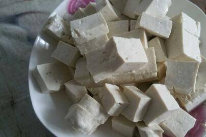 豆腐洗净备用。