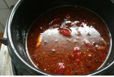 放适量油,烧热,放干辣椒,花椒粒,豆瓣酱,盐,生抽,爆香,加适量水。