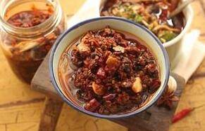 于之前熬好的糍粑辣椒混合,加芽菜、干辣椒圈、盐稍许熬制即可。