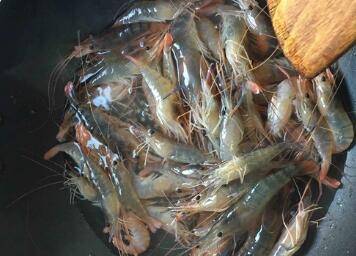 开水烫虾,把虾用开水烫一下,变色即可。