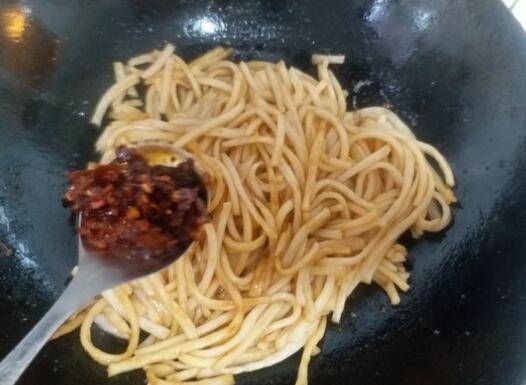 7、依次放入老抽,生抽,辣酱翻炒。