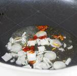 7、大蒜下锅爆香。