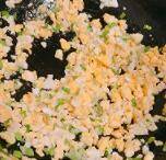 4、萝卜干切碎末,加入鸡蛋碎中炒出香味。