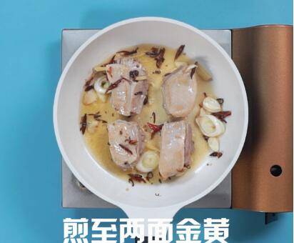 倒入鸭肉,煎至两面金黄。