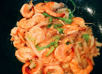 加入炒好的虾,翻炒一分钟左右。加鸡精出锅。